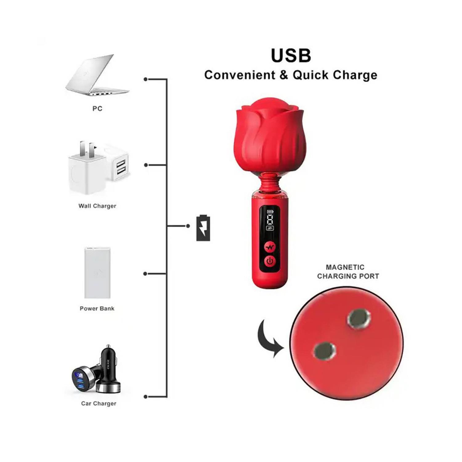 Rose Vibratör – 360° Döner Başlıklı, Sessiz ve Su Geçirmez, Dijital Ekranlı
