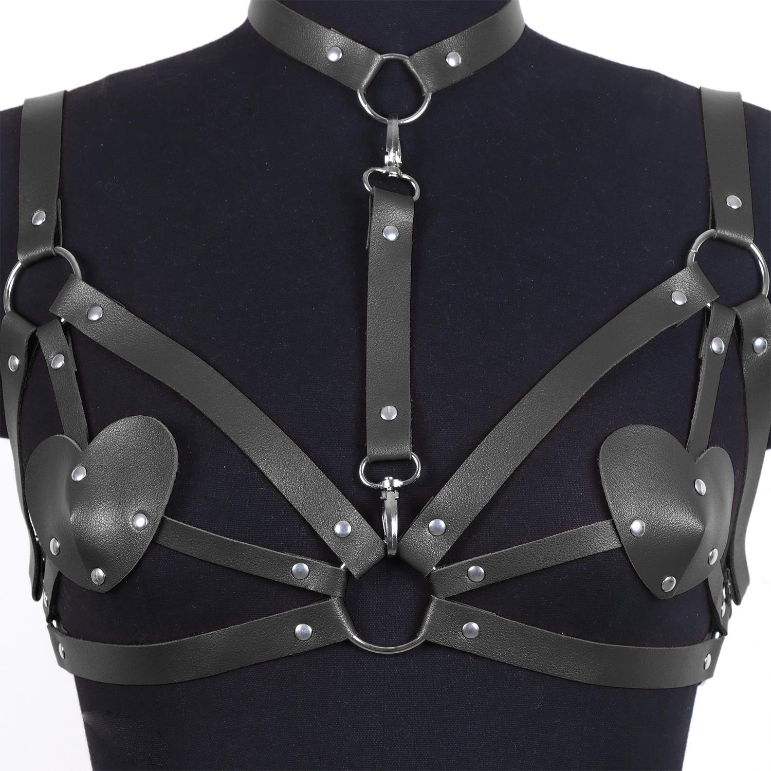 Cesur ve şık bir görünüm arayanlar için tasarlanan Kalp Detaylı Deri Vücut Harness Takımı, zarif kalp motifleriyle feminen bir dokunuş sunar. Yüksek kaliteli suni deri malzemeden üretilmiştir. Ayarlanabilir kayışları sayesinde farklı bedenlere uyum sağlar ve rahat bir kullanım sunar. Göğüs bölgesinde stratejik olarak konumlandırılmış kalp detayları, göz alıcı bir estetik yaratır.