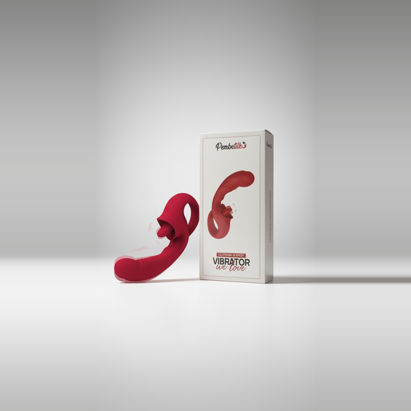 Modern G Noktası Uyarıcılı Vibratör Kırmızı – 2’si 1 Arada Titreşimli ve Yalama Modlu Seksi Oyuncak