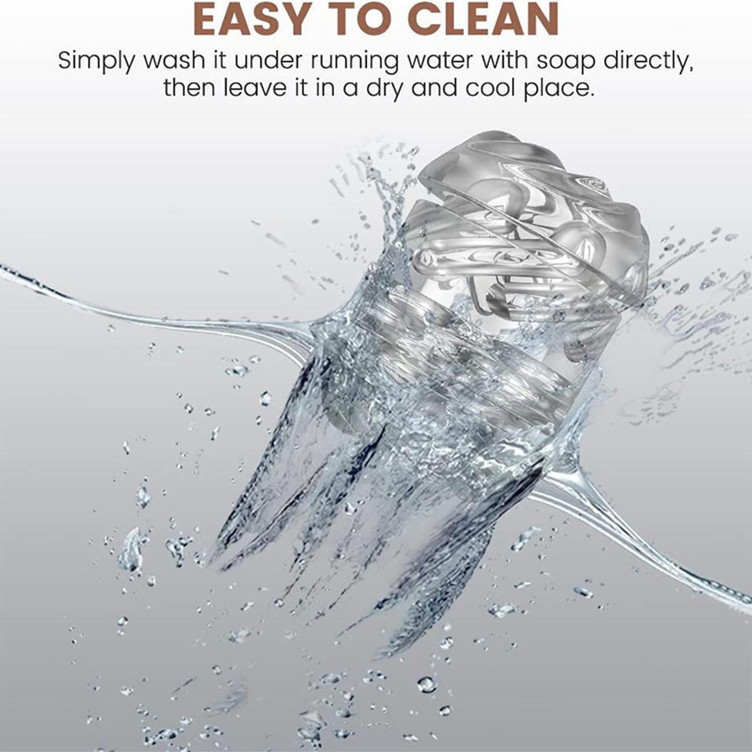 İç kısmında bulunan çift spiral dokulu kanal, yukarı-aşağı döner baskı hareketiyle sıradan deneyimlerin çok ötesinde bir haz sunar. Özel silikon malzemesi sayesinde oldukça yumuşak ve esnek olup, manuel baskı ile dilediğiniz sıkılığı elde etmenizi mümkün kılar. Ayrıca çıkarılabilir iç yapısı sayesinde temizliği son derece pratiktir – sadece su ve sabunla yıkayıp serin bir yerde kurutmanız yeterli.